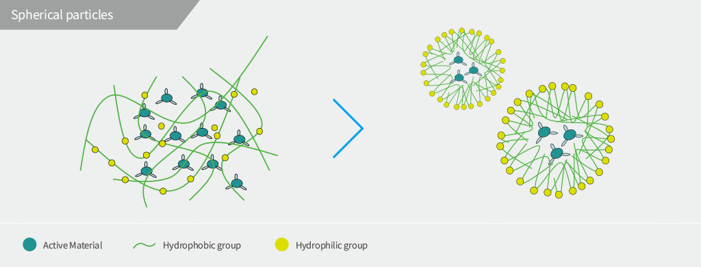 + Water insoluble ingredients become soluble clearly.